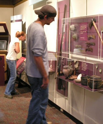 When the students arrived at the Piqua Historical Area this morning site manager Andy Hite (photo 2) spoke to them about the history of the Miami Village and English trader compound and gave them a tour of the museum. The students had the chance to look over artifacts recovered from the site in the 1970’s and a selection of trade items typical of the period (photo 3). This will help them recognize similar artifacts when they are encountered during excavations.