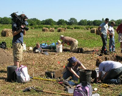 Along with the visitors came the crew of “Around the Farm”, a local access channel program which promotes the various events at the Piqua Historical Area. They interviewed students about the excavation units (photo 4) and artifacts.