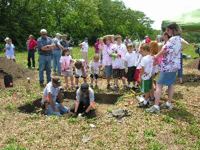 Next came the long awaited public tour, one of two that will be given during the Hocking College field school. Over 120 people boarded the canal boat at 12:30 to be transported back to the site. They came in as one large wave which, as one person remarked, was somewhat reminiscent of the French and Ottawa attack that ended the Miami and British occupation of Pickawillany. After an introduction by site manager Andy Hite and a welcome by OHS archaeologist Linda Pansing, one of the field supervisors, Tony Cox, addressed the crowd.