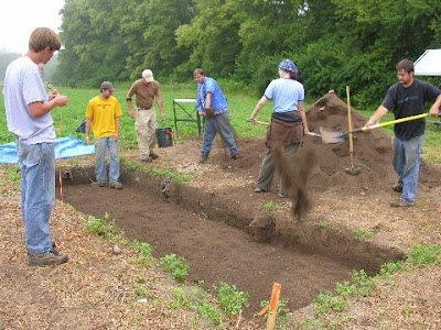 Thursday July 31 and the Hocking College field school at Pickawillany has come to a close. The excavation units are all mapped and filled in; little sign of all the action that has taken place over the past two weeks visible on the landscape.