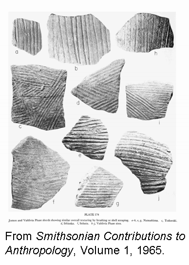 During late 1960, Estrada undertook a large excavation at Valdivia, which provided a much bigger sample of pottery from the earliest levels. The following spring, he wrote us a letter with a novel suggestion. He had encountered a report on the Jomon pottery of Japan and observed that many of the techniques and motifs of decoration were similar to those of Valdivia.