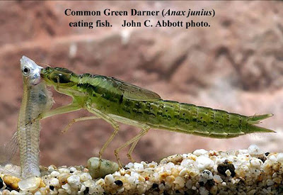 Early sightings of Common Green Darners (Anax junius) are common even if such an early sighting is unique for us in Ohio. They are the result of a mystery yet to be totally solved–the migration of Green Darners and about a dozen other species of dragonflies. In Ohio we appear to have two separate populations of Common Green Darners. One is a resident population, resulting from eggs laid last summer, which hatch and overwinter as larvae. These larvae are typically fairly large during late winter in their last or near last instars (referred to as FO or F1 instars out of about a dozen or so molts they go through as a larva). They may measure an inch long, which is not the largest dragonfly larva, but good sized just the same. These green darner larvae enter spring ready to emerge but do not emerge until the pond they are in becomes much warmer. This emergence is typically in June and their species name, junius, is quite appropriate at this latitude.