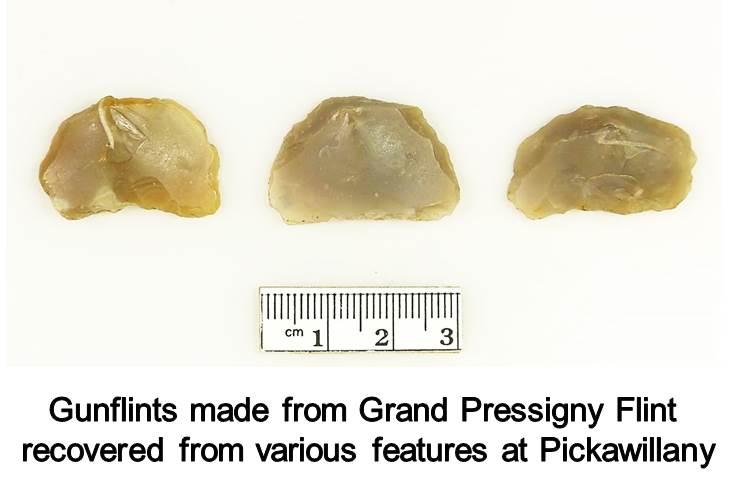 The French flint industry is or was centered in the village of Le Grand Pressigny in the Indre-et Loire region of central France, about 150 miles southwest of Paris. In geologic terms Grand Pressigny Flint dates back to the Upper Cretaceous Period of about 65 million years before present and occurs in irregular nodules and as strata in the bedrock. By contrast, Ohios deposits of Flint Ridge and Upper Mercer or Coshocton Flints are upwards of 300 million years old. Grand Pressigny Flint has been utilized for tens of thousands of years in areas of Western and Central Europe during the Middle to Upper Paleolithic periods, which is from about 100,000 to 10,000 years ago and has even been found in very specific historic contexts in North America. During the Neolithic period beginning about 10,000 years before present Grand Pressigny flint entered into its Golden Age and became extremely popular as an exceptionally high quality tool stone. During the 4thand 3rd millennia BC the region of Le Grand Pressigny became a center of both flint mining and the production of long, dagger-like blades that were distributed by the thousands throughout Europe. This vibrant industry continued until the flint axes and blades produced near Le Grand Pressigny were replaced by more durable bronze and iron implements. More recently the Le Grand Pressigny region was revitalized as the home to a flourishing gunflint industry that supplied the French armed forces in actions around the globe or wherever flintlock muskets and rifles were used either in warfare or as a tool of the day. It was thought by many that these gunflints were superior to all others and has even been hinted at that during the Revolutionary War that the British soldiers whose life actually depended on a reliable gun flint favored the high quality, honey-colored French gunflints over their domestic Brandon gun flints. French gunflints have been found on archaeological sites throughout northern Africa, Europe and North America including many 17th and 18thcentury sites in Canada and the United States east of the Rocky Mountains. In Ohio, French gunflints have been found at Pickawillany, Ft. Meigs and Ft. Laurens and numerous other sites from the Late Colonial period through War of 1812.