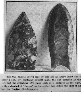 Though the date of the article and the publication from which it came has been lost to time, a newspaper clipping most likely from early 1937 or 1938 describes the founding of the Lithic Laboratory and details a planned trip by Shetrone to England: Brandon, England, the only place where the art of flint chipping is still practiced after 600 years, will be Dr. Shetrones destination when he sails from New York, June 2. Here he will live with the so-call flint-knappers and make a close study of their methods and techniques.