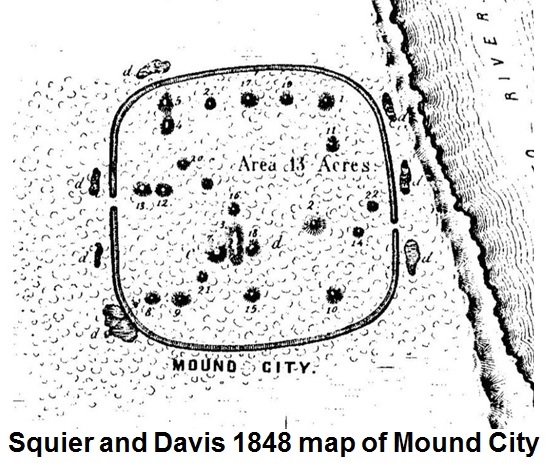 Brown’s report also synthesizes the research of previous generations of archaeologists at Mound City, including the pioneering work of Ephraim Squier and Edwin Davis in the mid-19thcentury. To Brown’s credit, rather than criticizing their comparatively rough field methods, he acknowledges the important contributions made by these early investigators. For example, he notes that the “fieldwork in 1963 and 1966 revealed the embankment to have the same asymmetrically oblong shape that Squier and Davis (1848) mapped.”