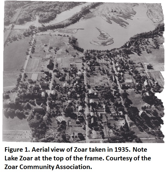 During this time, some interesting aerial photos of Zoar Village have been uncovered. The photos were taken of Zoar Village in 1935 by an amateur aviator/photographer prior to the construction of a U.S. Army Corps of Engineers Levy that was used for overflow of Lake Zoar.