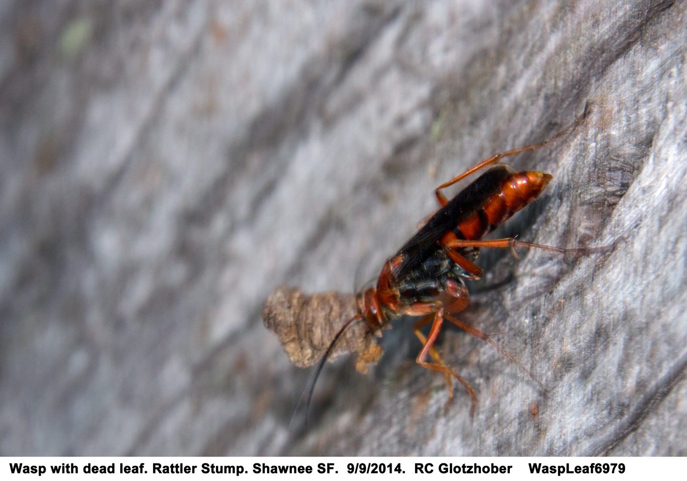 Last week I posted a blog about finding five baby Timber Rattlesnakes inside a rotting stump in Shawnee State Forest in southern Ohio back on September 9, 2014. I made very brief mention in that blog about an interesting wasp, with interesting behavior, that was using the very same stump! Here follows what information I have from field observations and from various searches.
