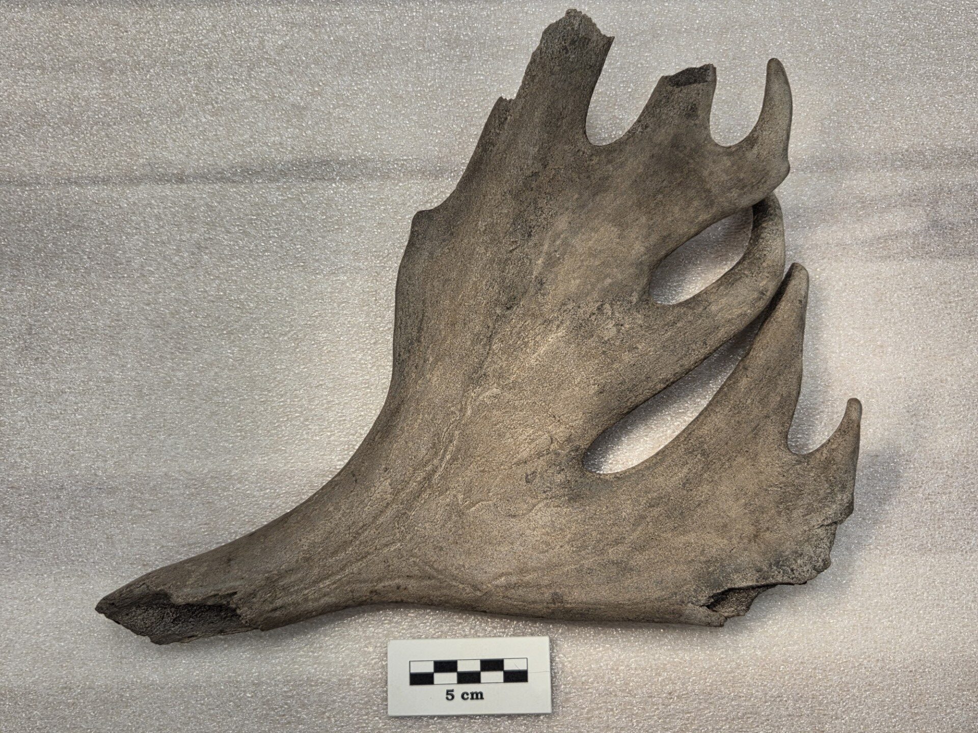 However, during the most recent Ice Age (Pleistocene epoch), which ended about 11,700 years ago, caribou lived right here in Ohio and ranged as far south as Tennessee. We know this because four examples of caribou remains have been found in Ohio counties (Erie, Huron, Richland, and Wyandot). Below is the large brow tine of a caribou found in Huron County. All four of the Ohio finds are partial antlers, which are easily recognizable as caribou. I wonder how many caribou finds, where the unique antlers weren’t recovered, have been mistaken for deer.