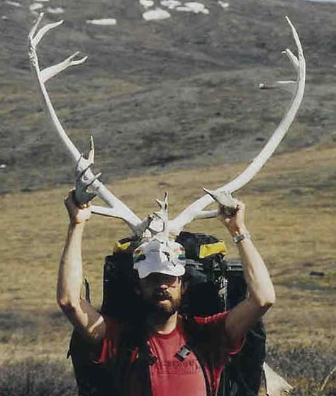 Caribou can be “left-handed”, when the enlarged brow tine grows from the left antler, or “right-handed” when it grows from the right antler. Or both brow tines can be about the same size. The enlarged brow tine usually has a very flat (palmate) surface. Originally, scientists thought it was used to scrape snow away to access lichens, the main food of caribou in the winter. But caribou feet are well adapted for scraping snow and the antlers are shed months before the snow melts. Now we think the brow tine is for display during courtship.